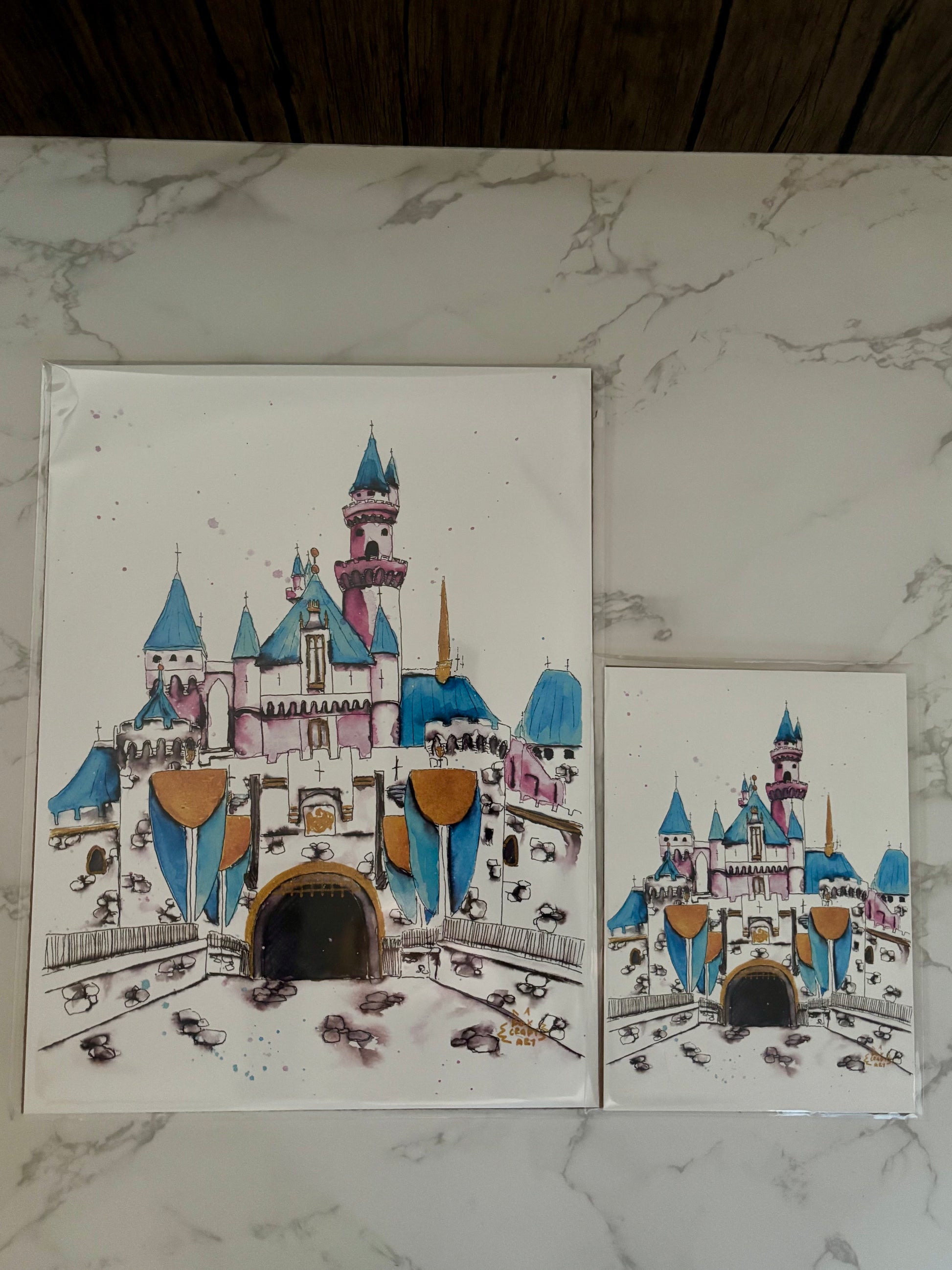 9x12in or 5x7in print of a watercolor painting of a Fairytale Castle. Original painted by Fox Craft Art.