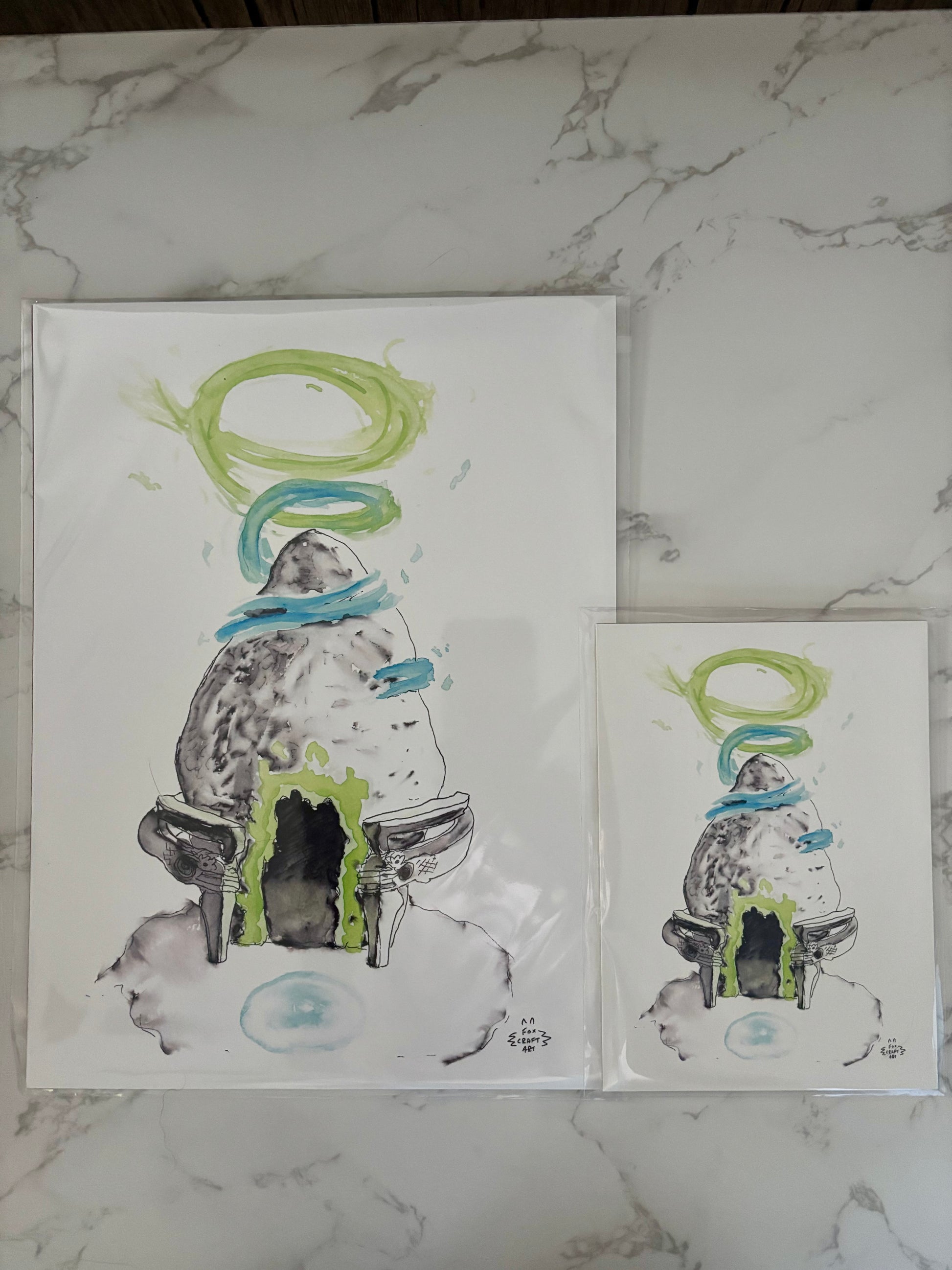 9x12in or 5x7in print of a watercolor painting of a shrine from TotK Zelda. Original painted by Fox Craft Art.